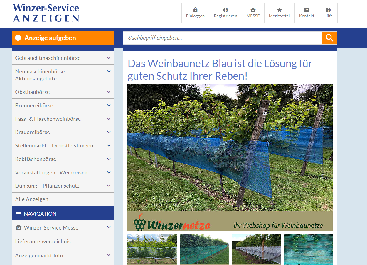 Wir schalten regelmäßig Werbeanzeigen auf der Website von Winzer-Service. Winzer-Service ist außerdem Veranstalter der Winzer-Service Messe in